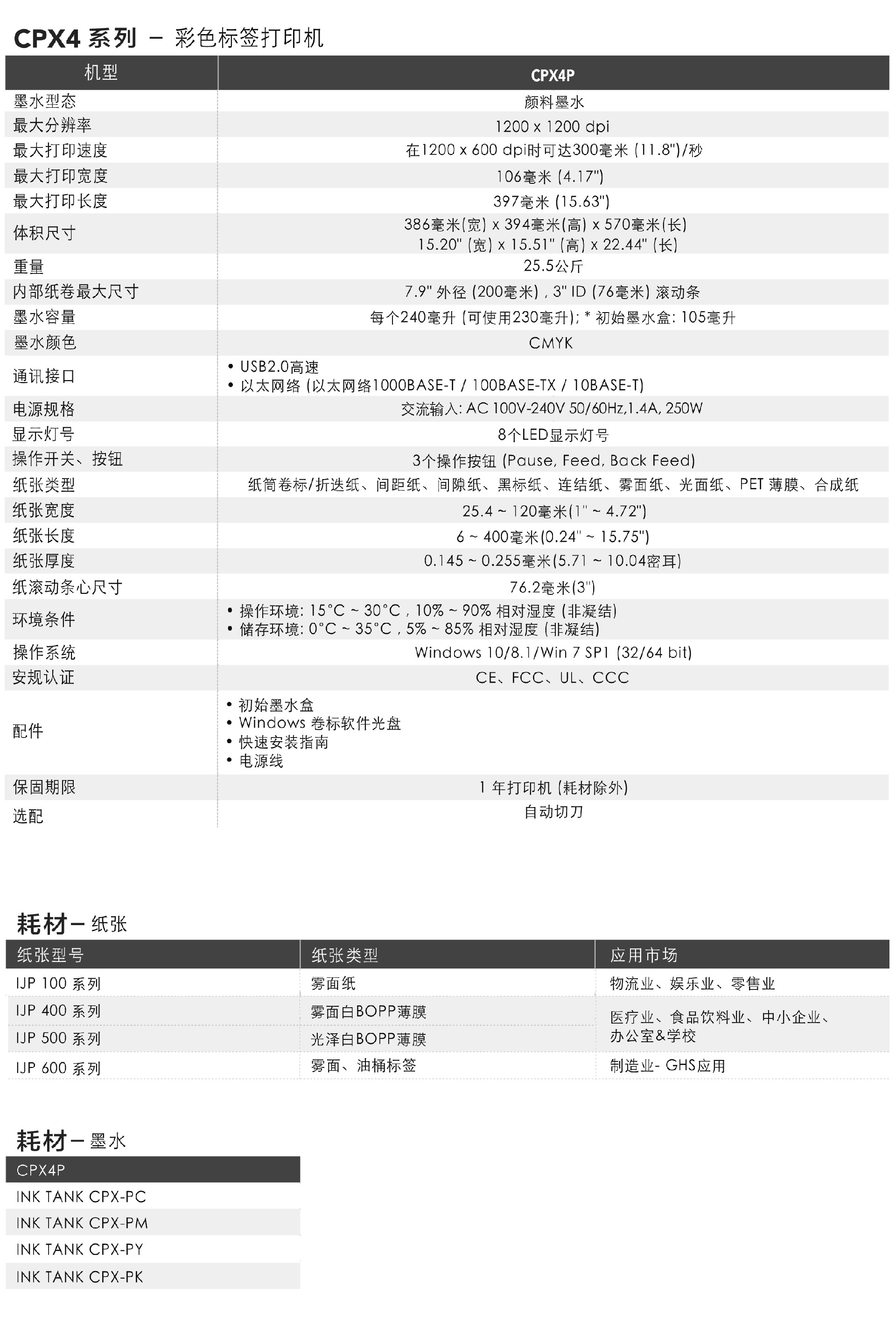 CPX4系列可打印符合GHS标准并符合行业要求的标签,且非常适用于任何需要防水,防褪色,耐磨和防污的标签。